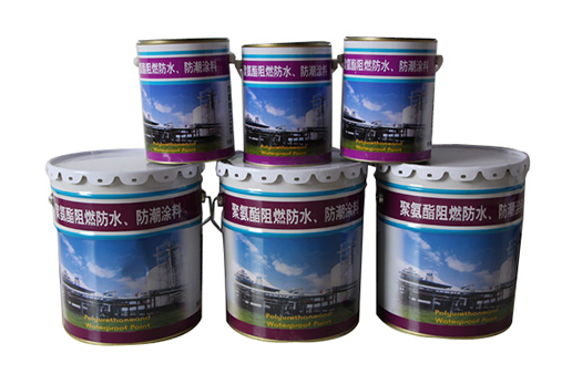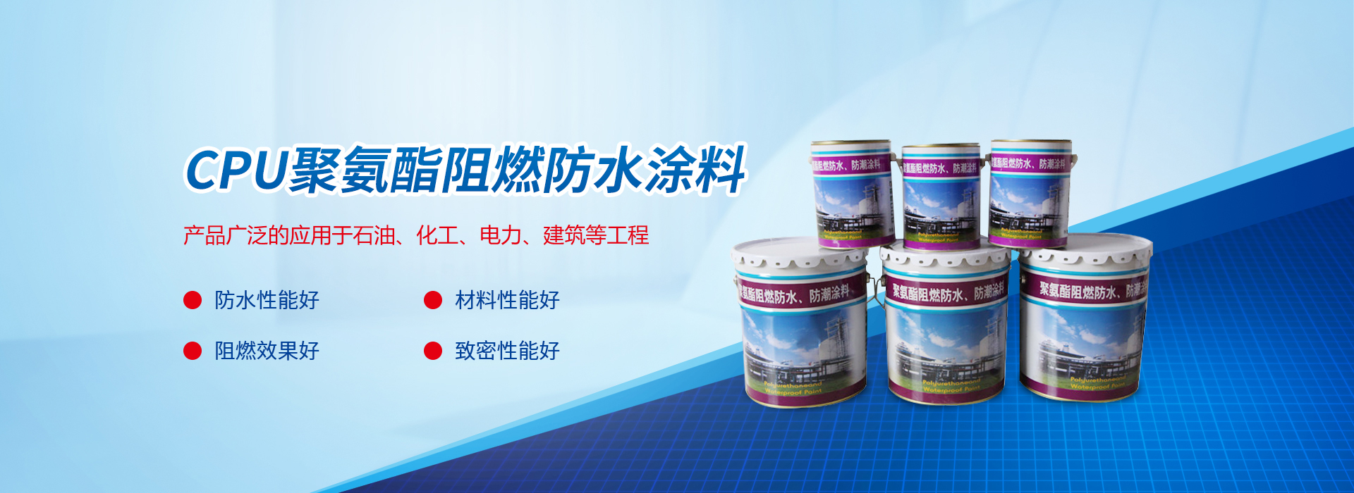 CPU聚氨酯阻燃防水涂料,是以帶有異氰酸基(一NCO)的化合物作為主劑(A組分) 和以軟化劑、防老劑、阻燃劑、填充劑等經(jīng)特殊加工的硫化劑為固化劑(B組分),構(gòu)成雙組份的高分子涂膜材料。
